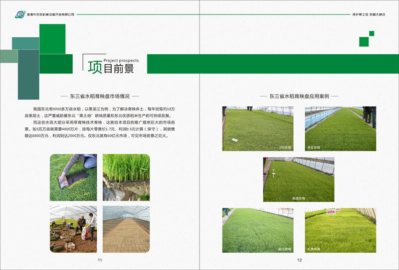 而這些水田大部分采用旱育秧技術(shù)育秧,這就給本項(xiàng)目的推廣提供巨大的市場(chǎng)前景。如1百萬畝就需要4000萬片,按每片零售價(jià)1.7元、利潤0.5元計(jì)算(保守),其銷售額達(dá)6800萬元,利潤則達(dá)2000萬元。僅東北就有60億元市場(chǎng),可見市場(chǎng)前景之巨大。